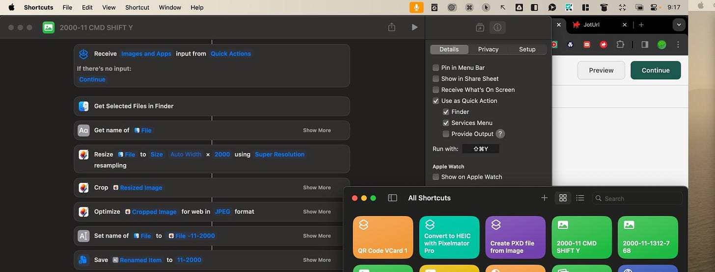 Personally, I created a Shortcut using “Shortcuts“, that is doing an automation using Pixelmator Pro (you can find the file in the Resources section):